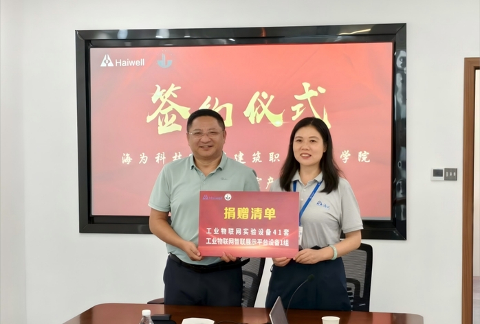 仪式上,蒋兆峰简要介绍了集团的发展历程和办学成果,并代表公司对厦门海为科技有限公司的捐赠表示感谢。他表示,当前公司正处于职业本科创建、“双高”建设、湖西校区办学等发展的关键节点,此次捐赠将有力推动公司专业建设与高质量发展。他希望,双方进一步拓展在工业物联网领域人才联合培养、科研协同攻关等方面的合作深度和广度,探索更加高效务实的合作模式,实现校企同频共振、互利共赢。